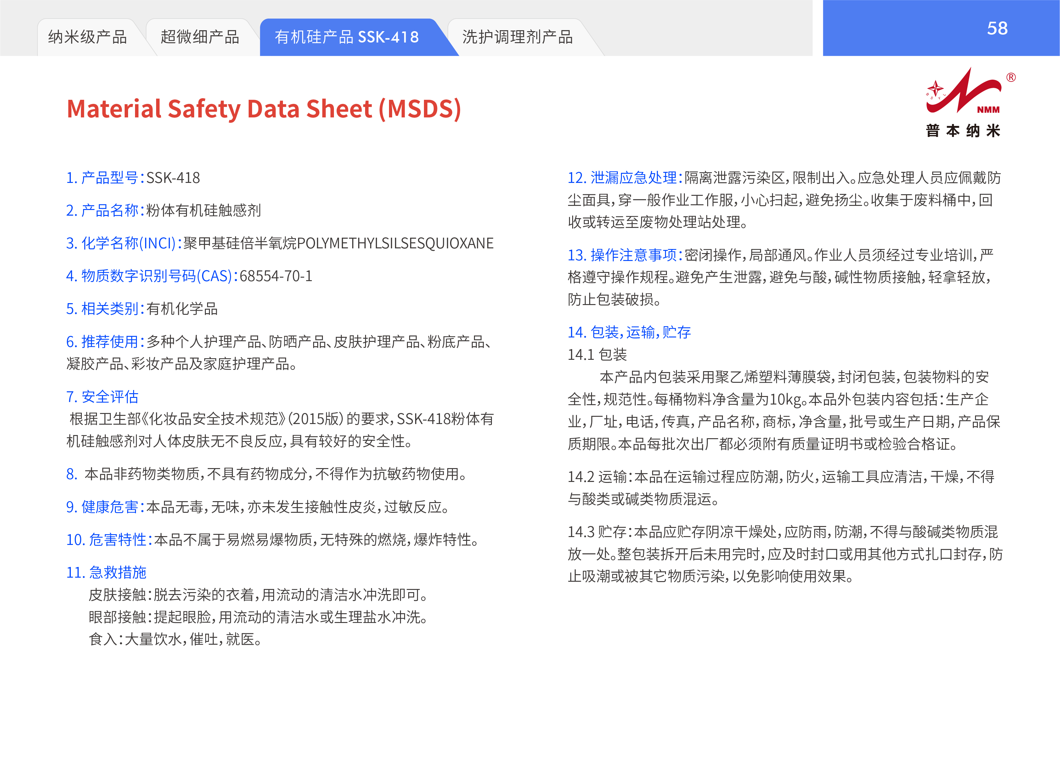 SSK-418 粉体有机硅触感剂